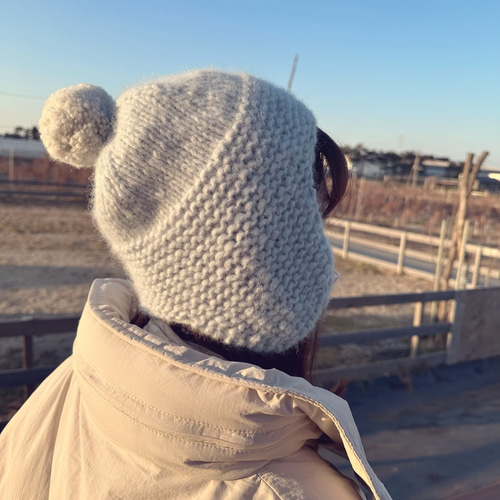 • アルパカのふわふわ 耳当て付きニット帽 グレー×ライトグレー